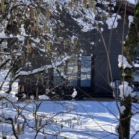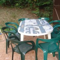 Possibilité de manger à près de 20 personnes autour des tables, en cas de location des deux chalets.