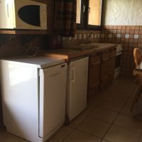 Séjour avec cuisine à l’américaine : cuisinière à gaz avec four, micro-ondes, réfrigérateur… et tout l’appareillage électrique indispensable : cafetière, grille-pain, bouilloire, fer à repasser…