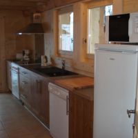 un séjour avec cuisine à l’américaine. Cette dernière dispose d’une cuisinière électrique avec four, d’un réfrigérateur, d’un micro-ondes et tout le nécessaire électrique.