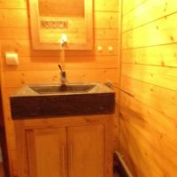 Si vous êtes un grand groupe, Il est possible de réserver un, deux ou trois chalets puisque l’on passe de l’un à l’autre sans sortir grâce à un sas commun. On peut manger à 15 dans l’un ou l’autre des séjours. Chaque chalet dispose de sa terrasse privée, celle-ci en été a un salon de jardin et des chaises longues.